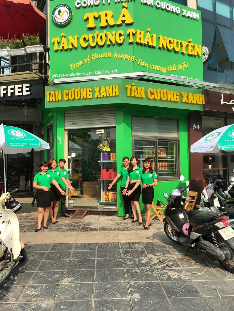 chè thái nguyên của mình, Tân Cương Xanh cũng đã thành công trong việc xây dựng Chuỗi cửa hàng về Chè Thái đầu tiên tại Việt Nam. Tân Cương Xanh ra đời cách đây gần 20 năm, từ văn phòng trà đầu tiên tại Cầu Giấy (Hà Nội), Tân Cương Xanh đang xây dựng chuỗi cửa hàng chè Thái Nguyên ngon tại Thái Nguyên (2 cửa hàng: 1224 Trần Hưng Đạo (TP Sông Công), 805 Trần Hưng Đạo (TP Sông Công)…) đến Hà Nội (6 cửa hàng: 42 Tây Sơn (Đống Đa), 36 Nguyễn Văn Huyên (Cầu Giấy), 27 Nguyễn Ngọc Nại (Thanh Xuân)…..), TP.Hồ Chí Minh (3 cửa hàng: số 288A3 Nam Kỳ Khởi Nghĩa (Q.3) và Số 575 Hoàng Văn Thụ (Q.Tân Bình)….). Đây chính là một bước tiến mới trong cung cách phục vụ khách hàng, vượt lên trên lối phục vụ khách hàng theo kiểu truyền thống nhằm đáp ứng tối đa – nhanh nhất nhu cầu của quý khách hàng mọi điểm, mọi nơi.
