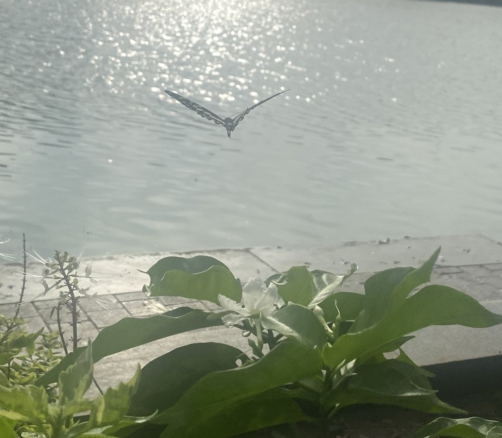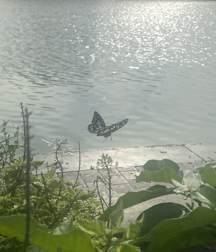 Hết mưa rồi, trời nắng nhẹ và gió mát lắm, mà vườn vẫn ướt, em ra chỉ sợ vồ ếch thôi![]()