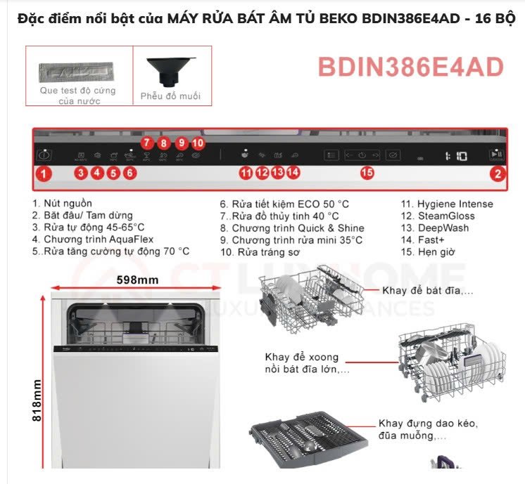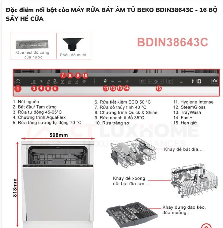 BEKO âm tủ 16 bộ BDIN386E4AD: 11tr - sx Thổ Nhĩ Kì