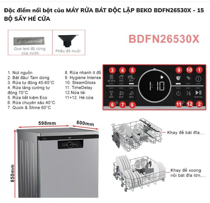BEKO độc lập 16 bộ BDFN36641XA : 10tr500 - sx Thổ Nhĩ Kì