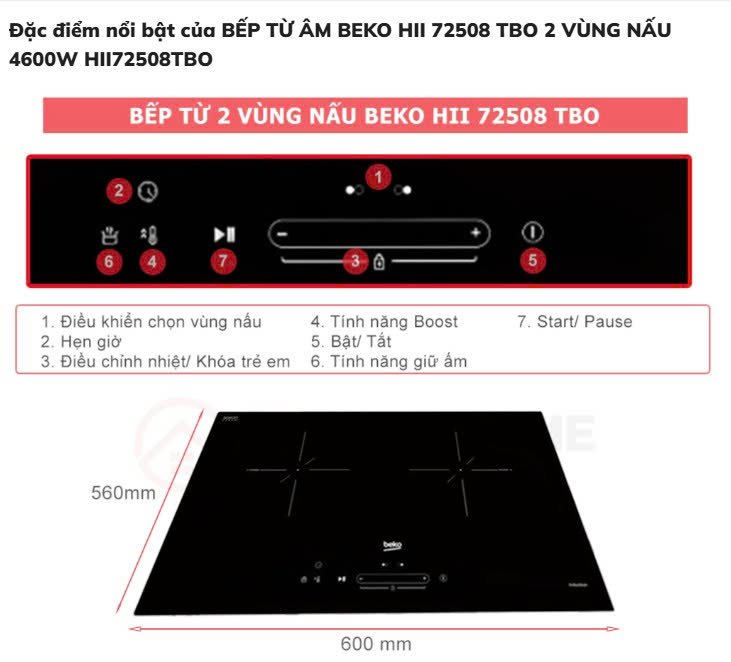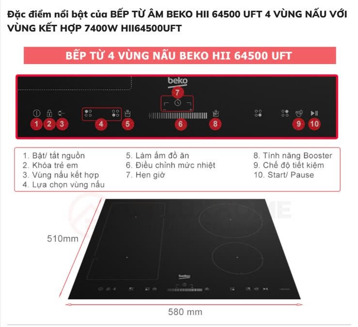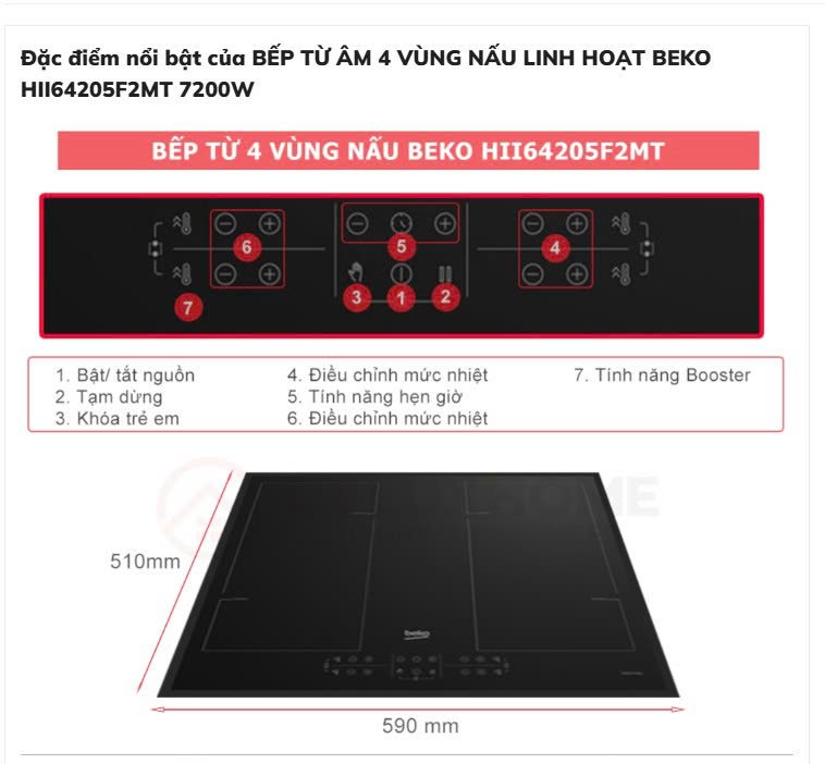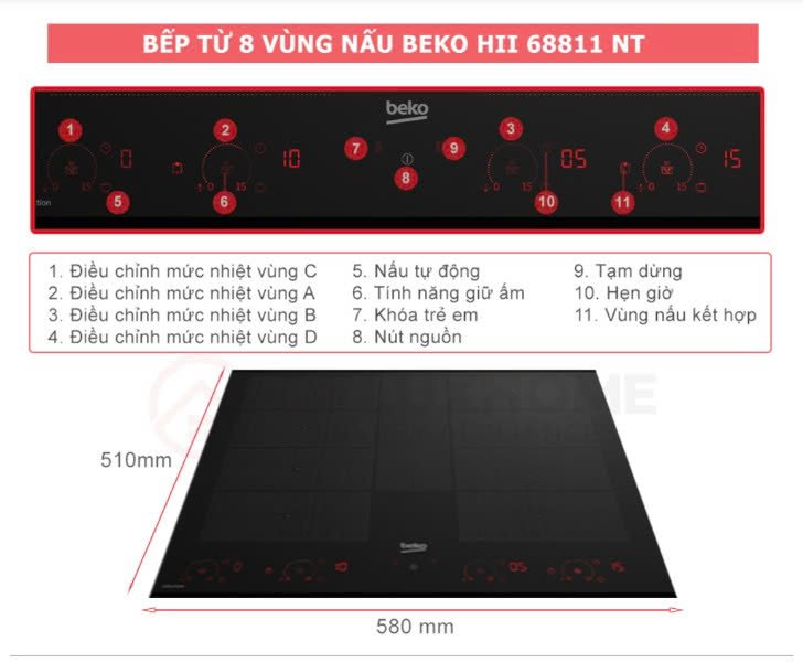 BEKO HII 68811 NT: 10tr5tr - 8 vùng nấu, sx Thổ Nhĩ Kì