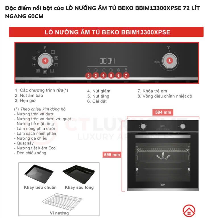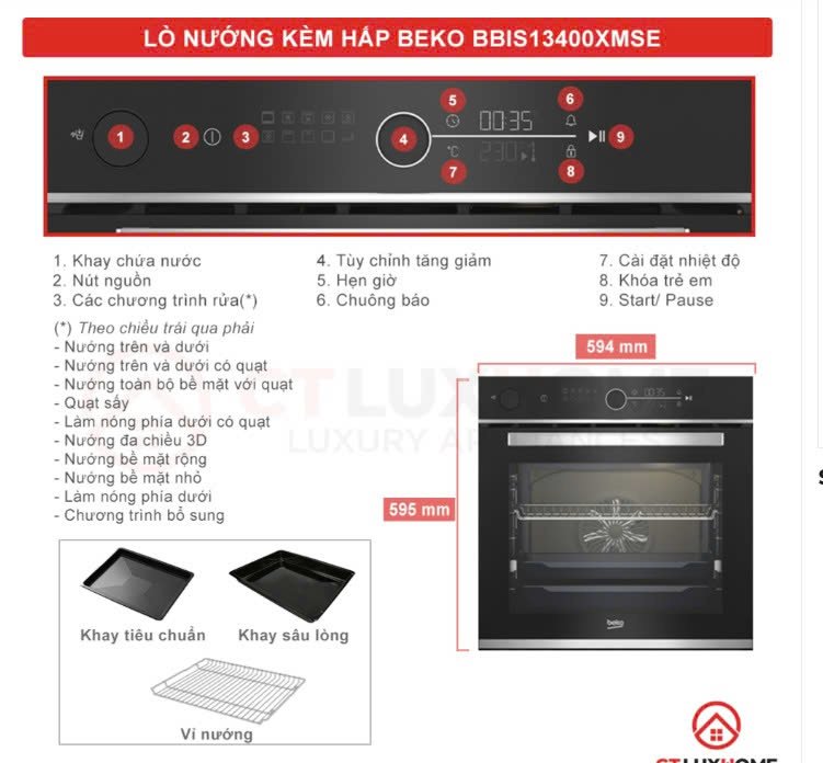 BEKO BBIS13400XMSE: 11tr - nướng kết hợp hơi nước, vệ sinh thủy phân - sx Thổ Nhĩ Kì