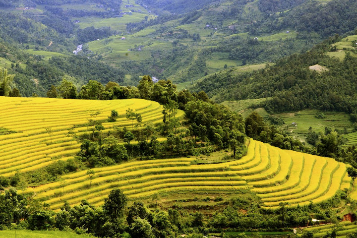 Những thửa ruộng bậc thang vàng óng- Kiệt tác của đồng bào Mông làm ta như bị bỏ bùa .