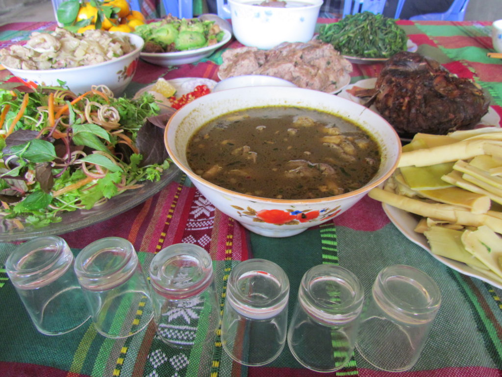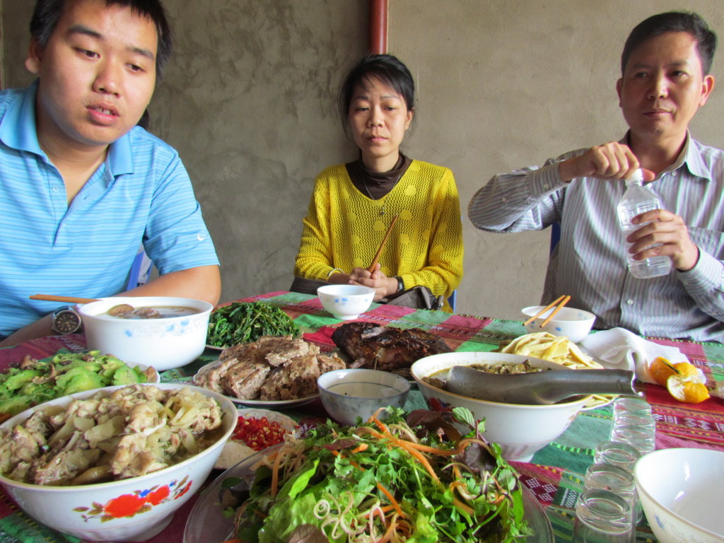Ừ! Đúng là "thổ công", chỉ gần 1 tiếng sau, tụi mình đã có mặt ở căn nhà ven thị trấn, nằm dưới chân đồi xanh mướt và rất lâu rồi, mới lại được "ăn cỗ người Thái", mà ít ai có thể tưởng tượng ngon, đặc sắc đến chừng nào...