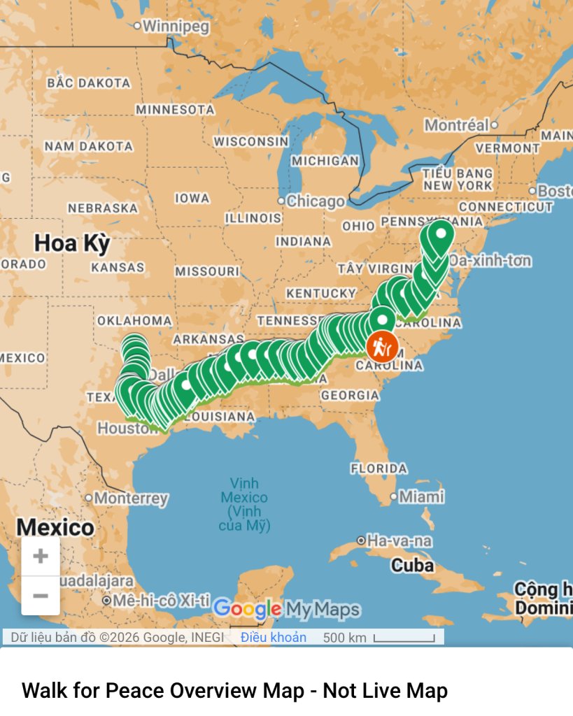 Một đoàn sư gốc Việt từ chùa Hương Đạo Texas, US đang hành trình đi bộ đến Washington rất được chú ý ở Mỹ.
