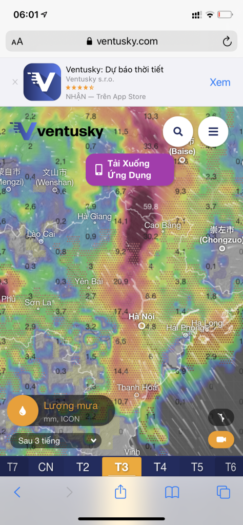 Chỗ nhà em đang lúc mưa, lúc tạnh.
