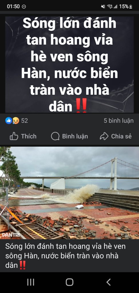 Các cụ khu vực từ Quảng Bình , Quảng Trị , Huế , Đà Nẵng , Quảng Nam , Quảng Ngãi tình hình sao rồi ạ ? Em nghe app dự báo sẽ mưa lớn kéo dài đến giữa tuần sau khiếp quá . Dự là đường bộ đi qua các tỉnh này sẽ bị ngập lụt nhiều nên các cụ mợ cập nhật lên thớt nhé .