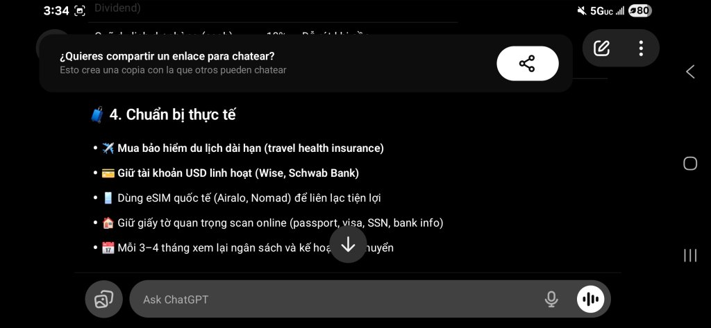 Nếu cụ để 600k vào ETF dài hạn, mỗi năm dùng khoảng 10k đi du lịch thì sống ở Mỹ cũng ổn định.