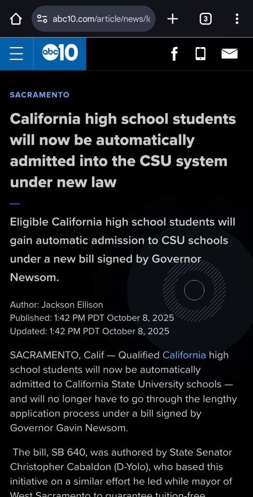 Một bước tiến mới cho nền giáo dục bang California. Kể từ năm học 2026, học sinh trung học California đủ tiêu chuẩn sẽ được tự động nhận vào hệ thống đại học California theo luật mới. Không cần phải nộp đơn, không cần chờ đợi xét duyệt.