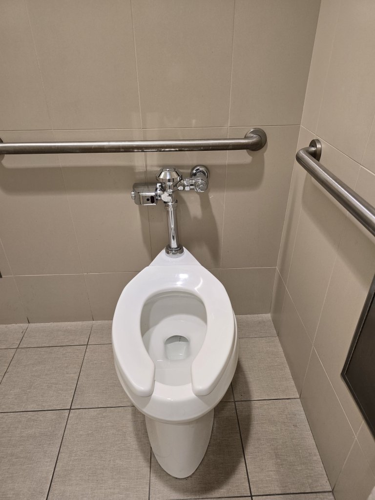 Việc lắp đặt vòi xịt nước ở nhà vệ sinh công cộng hoàn toàn không đơn giản. Ở gia đình thì ta có thể giữ gìn khô ráo, nhưng nhà vệ sinh công cộng thì khác, chỉ một cá nhân thiếu ý thức thì nước nôi sẽ tùm lum dẫn tới mất vệ sinh và an toàn. Cắt đặt người trực để dọn dẹp nhà vệ sinh công cộng thì không có đủ nhân lực, vì nhà vệ sinh công cộng ở Mỹ rất nhiều. Một công viên nhỏ cũng có vài cái, cửa hàng buôn bán lớn nào cũng có nhà vệ sinh công cộng. Chính vì thiếu người dọn vệ sinh nên họ phải tận dụng các cảm biến xả nước.