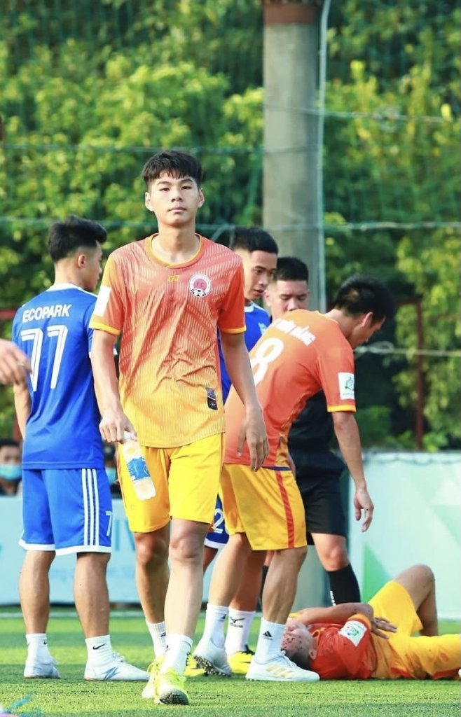 Ảnh cách đây 5 năm, 1 trận bóng sân 7 giữa tuyển Hữu Bằng và Ecopark, 2 thế hệ Hữu Bằng trong 1 khung hình: số 8 Văn Quyết và ông cháu Hiểu Minh, khi đó mới 16 tuổi.