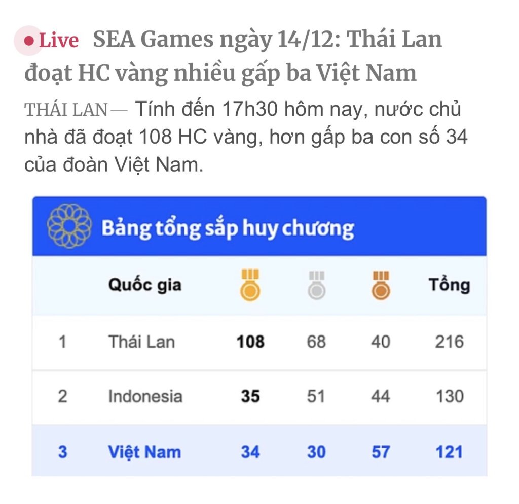Giờ thể thao VN vươn tầm hơn thì vàng ở điền kinh và bơi lội (2 môn số 1 OLP) rất nhiều và dễ dàng. Thậm chí điền kinh mình mấy kỳ trước còn vượt Thái trở thành nước có nhiều HCV điền kinh nhất