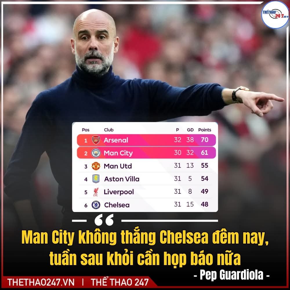 Hôm nay là Arsenal hơn 9 điểm + City còn dư 2 trận.