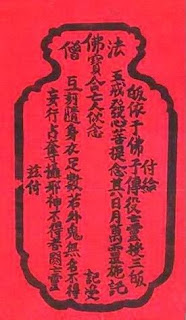 6/ MỘT CÁCH NỮA : dùng linh phù Tứ tung ngũ hoành hay phù của Chuẩn đề : Theo hiểu biết của dienbatn thì dùng Linh phù CHUẨN ĐỀ tốt hơn vì một bên là Giáo hóa các Linh hồn , một bên là dùng Luật. Dùng giấy vàng gấp theo hình Bát quái và dùng mực đỏ để vẽ Linh phù. Vẽ Linh phù CHUẨN ĐỀ thì dùng nghi tụng niệm tới trước phần Bát nhã thì bắt đầu đọc 108 biến của Chú CHUẨN ĐỀ. Sau đó tác bạch lý do và vẽ Phạn tự CHUẨN ĐỀ vòng quanh Bát quái. Chữ OHM vẽ ở tâm của Bát quái vẽ trước. Sau đó đọc Chú HỒI HƯỚNG cho Vong được Siêu sanh Tịnh độ. Nếu dùng Linh phù TỨ TUNG NGŨ HOÀNH thì cũng đọc nghi tụng tới trước Kinh Bát nhã thì cũng dùng giấy vàng chữ đỏ , giấy gấp hình Bát quái , vừa vẽ vừa đọc Chú TỨ TUNG NGŨ HOÀNH :