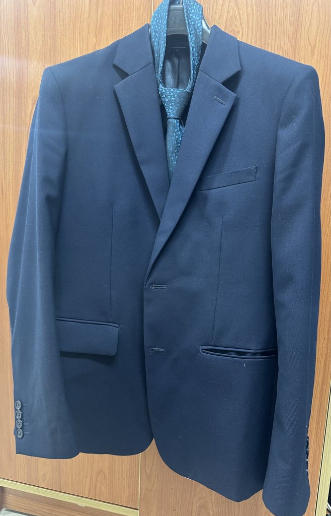 2. Bộ Suit màu Navy nhà may Đức Giăng cơ quan may đo theo số đo cá nhân mình nhưng năm nào cũng được may nên không mặc đến, thử khoác lên áo còn quần chưa mặc