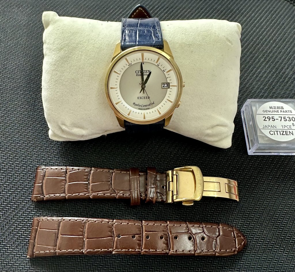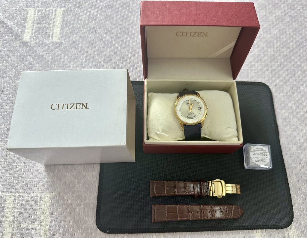 3. Citizen Eco drive, bản cao cấp sản xuất số lượng giới hạn của Citizen, size mặt 38, kính sapphire nguyên khối phủ chống lóa, siêu mỏng 6.7mm, vỏ khóa mạ vàng, lịch vạn niên đến năm 2100, đồng hồ tự nhận biết năm nhuận, tự chỉnh tháng 30, 31 ngày... Pin sạc năng lượng ánh sáng e mới thay hãng các cụ đeo 10-15 năm thoải mái ko cần thay pin.