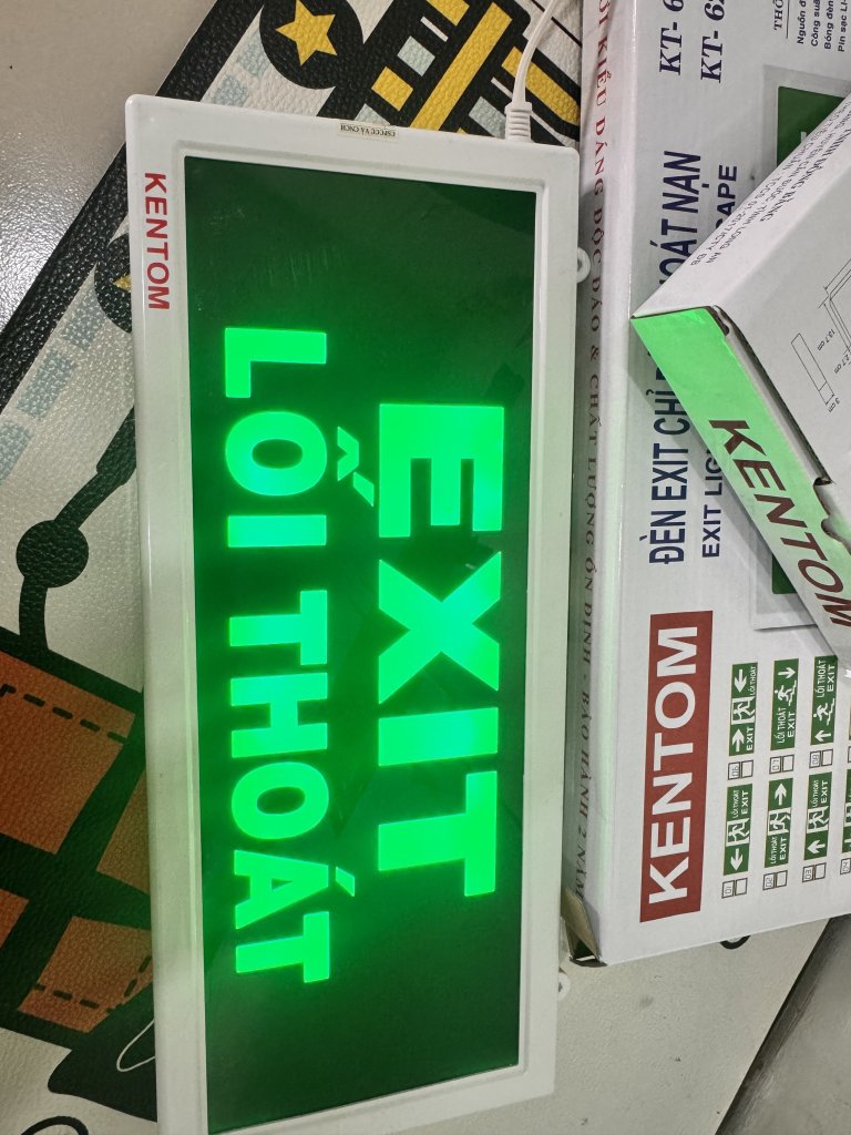 1. E còn 3 đèn Exit 1 cái 2 mặt. 2 cái 1 mặt. Hàng chuẩn xịn có tem đầy đủ. Pin chết đã tháo ra thay pin. Pin > 60p