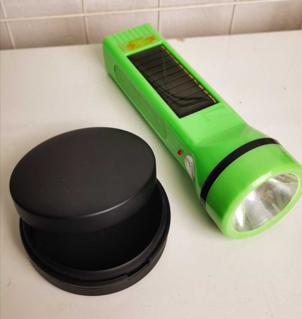 11. Đèn pin năng lượng mặt trời + Hộp đựng tai nghe hoặc đồ vật nhỏ bằng hợp kim: 50k (Chưa sử dụng)