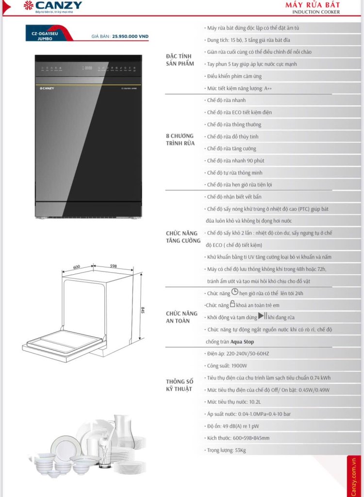 2/ máy rửa bát 15 bộ chính hãng Canzy, giá chỉ hơn mười triệu một chút