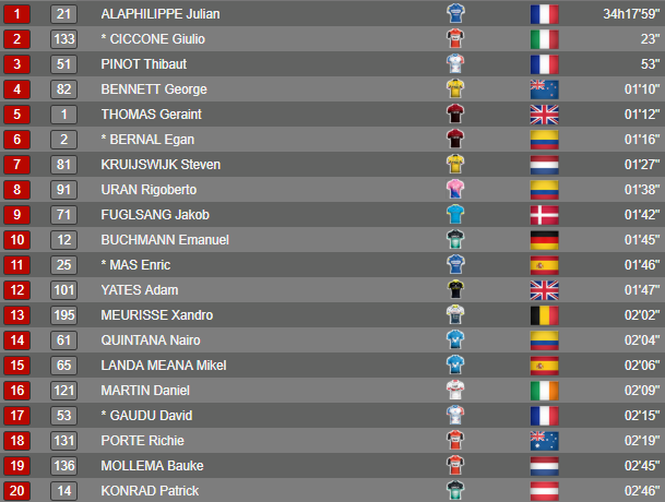 Cua rơ đang giữ áo vàng sau chặng thứ 8 là Alaphilippe Julia của đội đua Deceuninck-Quick Step