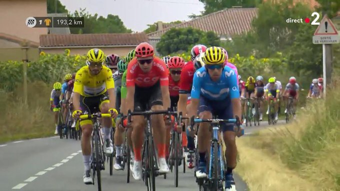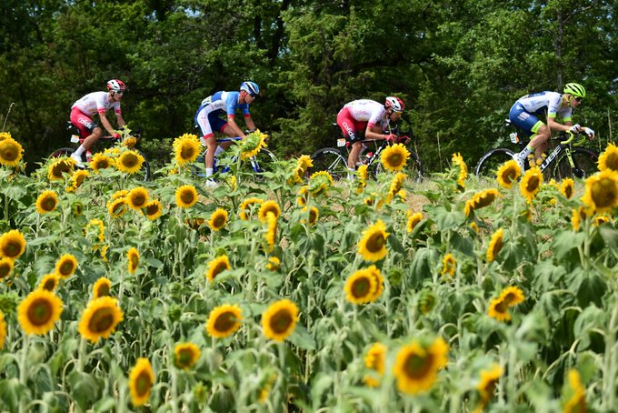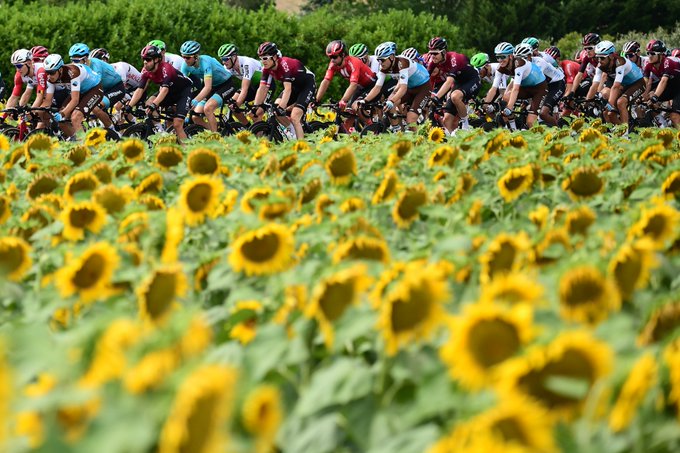 Chặn đua thứ 11 còn khoảng 12km nữa sẽ kết thúc tại Toulouse. Đoàn đua đi qua các cánh đồng hoa hướng dương đẹp và hiền hòa ở các làng quê của nước Pháp.