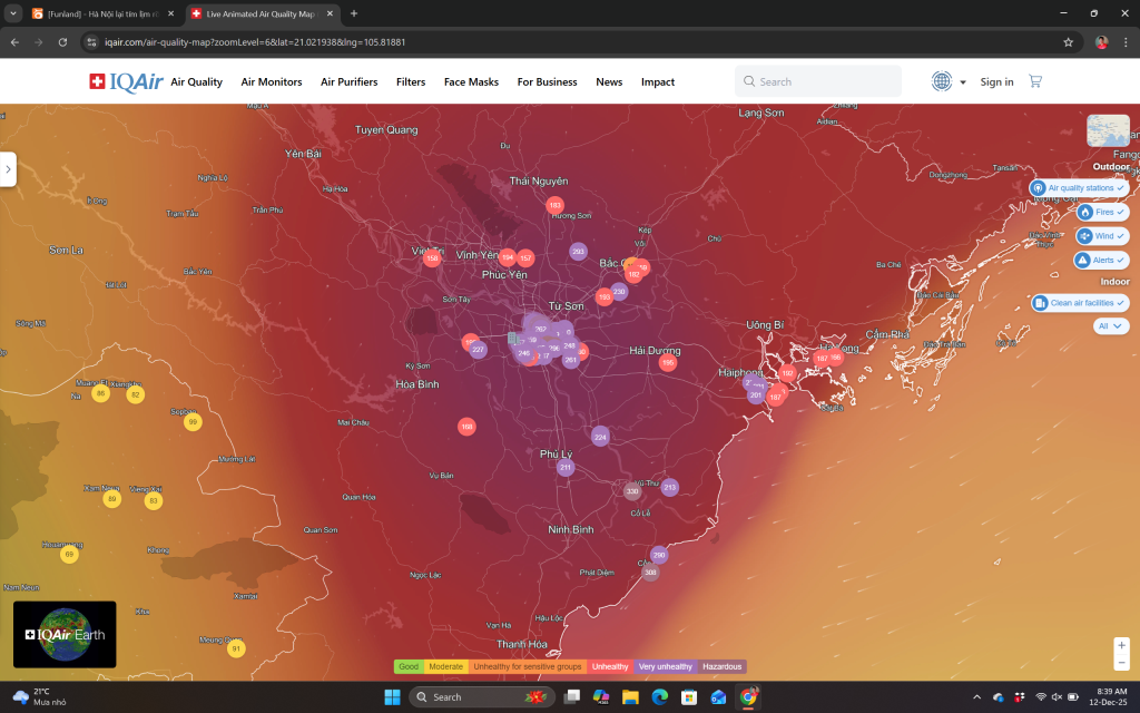 Do vậy cái AQI này là không chính xác, nó không phân biệt được đâu là sương mù và đâu là ô nhiễm.
