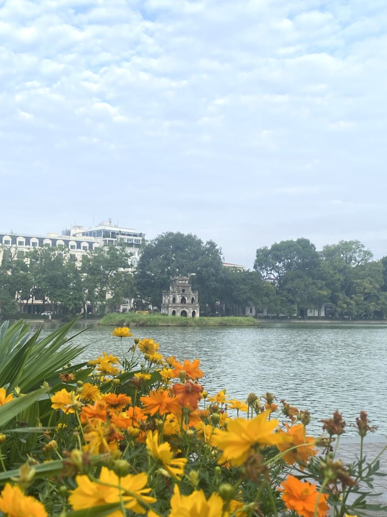 Tranh thủ bão chưa vào, em ra hồ ngắm hoa![]()