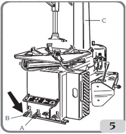 Trước khi thực hiện những hoạt động can hệ tới điện và khí nén đối với Máy ra vào lốp , hãy chắc chắn rằng máy được lắp ráp đúng như mô tả của hình dưới đây (hình 5).