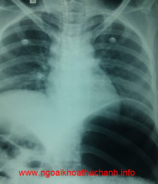 Bóng hơi dạ dày rất to đẩy cơ hoành trái lên trên