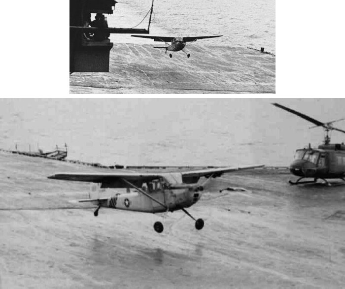 Quang cảnh lúc chiếc L19 do Thiếu Tá Lý Bửng lái đáp an toàn trên HKMH Midway