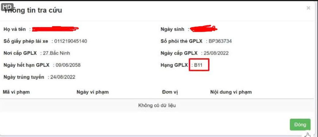 Kiểm tra trên trang gplx thì nó báo như này