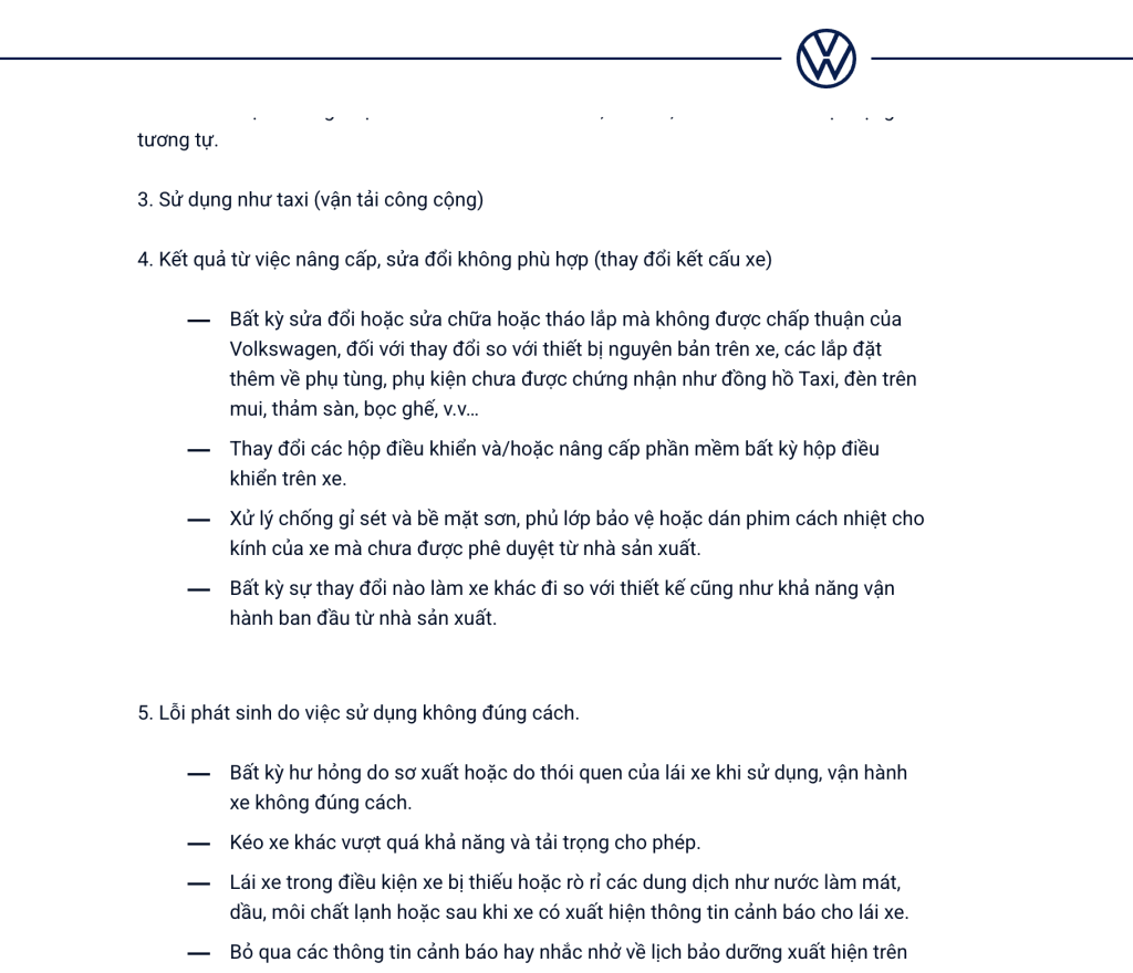 13:10 30/07/2025 #1 C Cù Trọng Tâm Xe buýt Biển số OF-361965 Ngày cấp bằng 7/4/15 Số km 729 Động cơ 265,264 Mã lực Em lượn trên page hãng thấy có ghi các điều khoản như này, bác nào trong hãng trả lời giúp e là nâng cấp option bên ngoài có mất bảo hành không ạ Chỉnh sửa cuối: 20/8/25