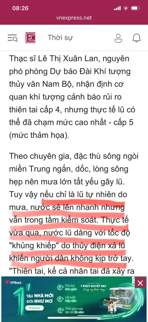 Này là có thông báo đến dân nhưng chính cán bộ cũng không ý thức được mức xả lũ như thế này là nguy hiểm như thế nào, có lẽ vì chưa bao giờ dính lũ lớn như vậy. Chủ quan đến từ cả chính quyền và người dân, nhưng nhất quyết phải đổ cho thằng thủy điện xả lũ cơ.