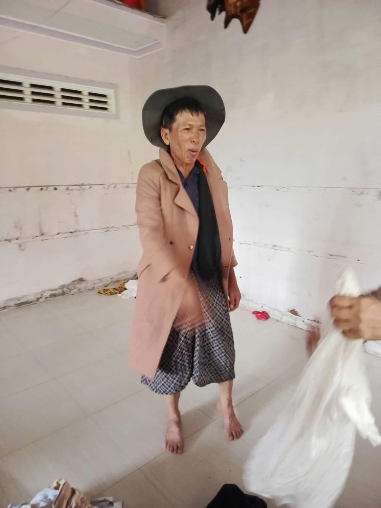Các chú, các anh...khu vực bão lũ khi nhận được quần áo cứu trợ.