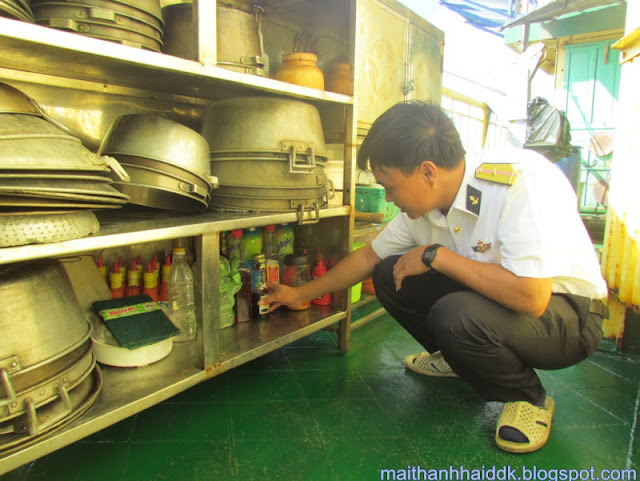Ca ăn đêm, đã dọn sẵn ngoài boong dưới, cũng phải bê hết vào trong phòng, cho bộ đội lấy dây chằng buộc bàn ghế, xoong chảo nồi niêu.
