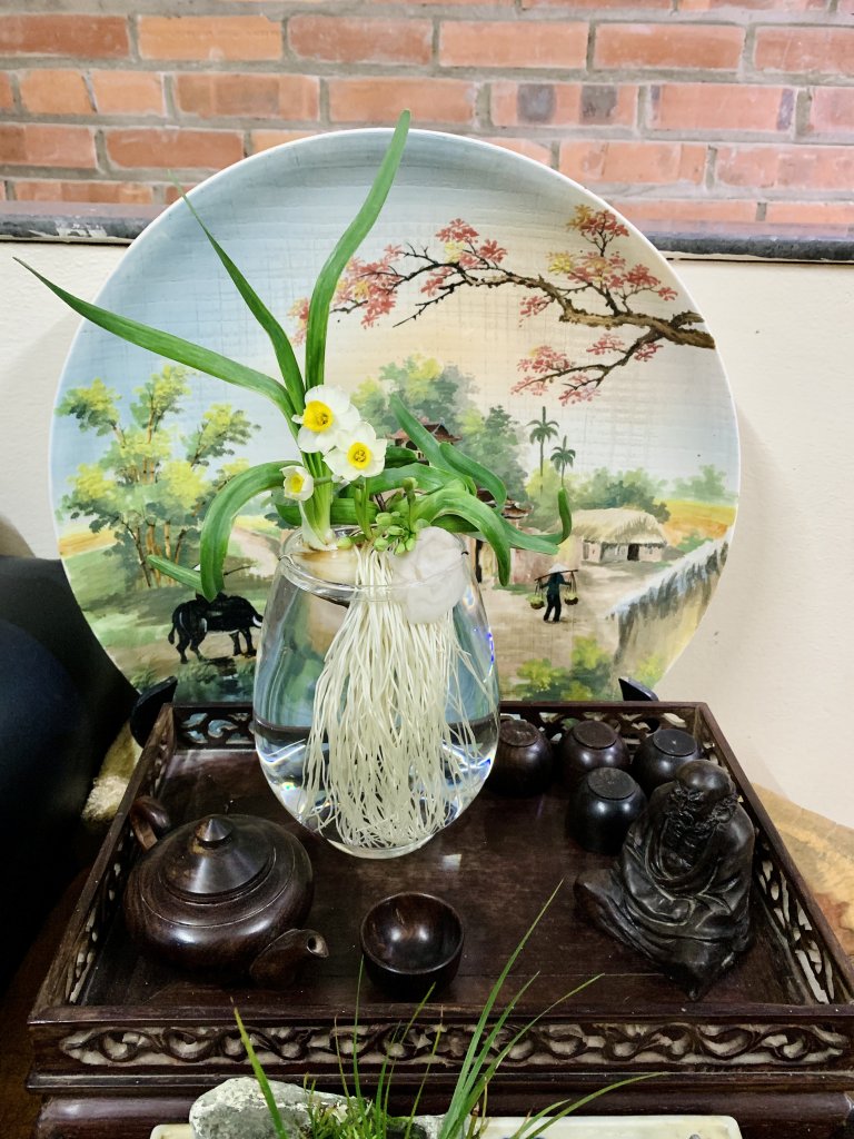 Mời các bác ẩm trà khán thuỷ tiên, nhân tiện em khoe cái khay trà cũ, mua đâu 5-7 năm trước của 1 cụ trên Chợ giời OF, thấy cụ đấy bảo gỗ gụ, giá đâu khoảng 1tr, em mua luôn. Về mới biết là trắc ta, khổ quá! :D