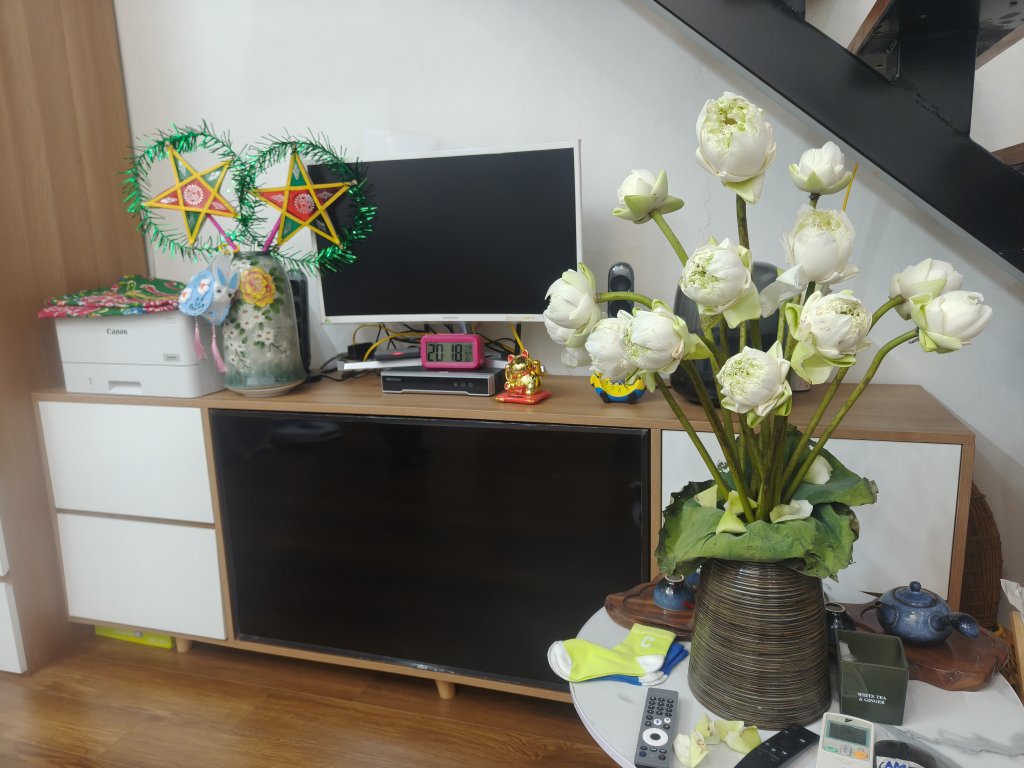 Chiếc tivi to tổ chảng, cái khăn nhựa trải bàn, phích nước, cửa sổ cùng bộ cửa gỗ…. kể cả cái nền nhà nữa, nhìn như giai đoạn 1995-2000 vậy