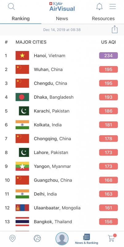 Mình cứ tưởng sau vụ cho 1 sao thì không khí sẽ trong lành còn HN ko đứng thứ nhất nữa!