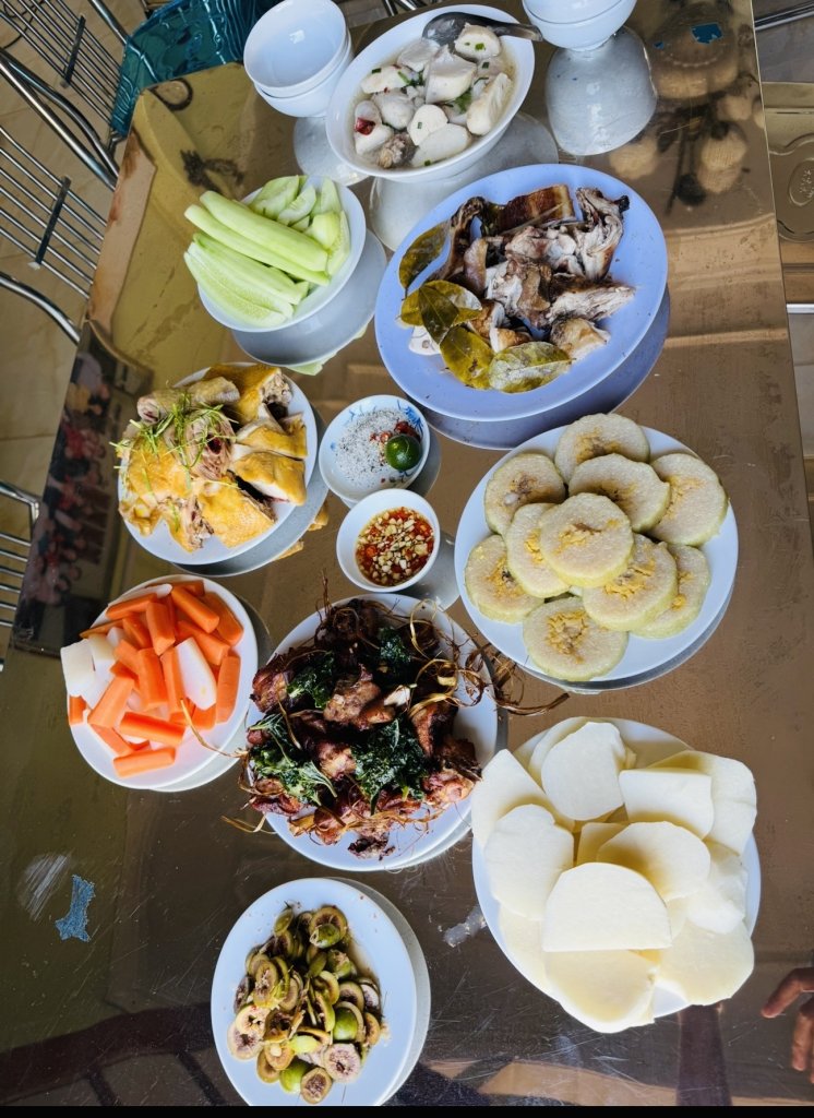 Vầng, sáng râu trưởng mò về đến nhà thì các chị đã mua hết đồ, thợ nấu đã đếnMợ Zó chắc về quê CST nhỉ![]()