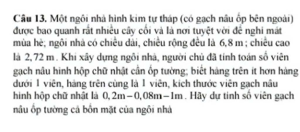Tiện thớt này em nhờ GS phuongmit trên thông thiên văn dưới tường sinh lý tư vấn: F1 em học lớp 11 có bài toán như sau: tính số gạch ốp tường biết viên gạch màu nâu hình hộp chữ nhật có kích thước 0,2 x 0,08 x 1m. Em ngày xưa học khối A mà giờ đọc đề stress vì không biết tác giả định ốp mặt nào