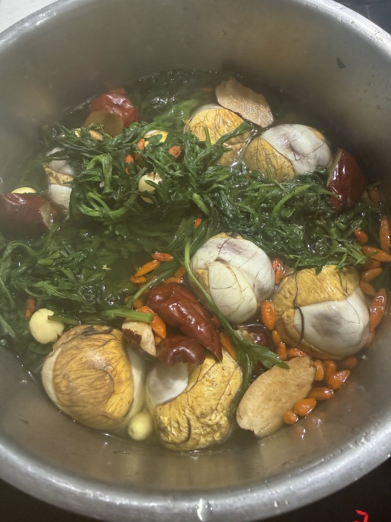 Ơ nay mợ mí em trùng thực đơn. Em cũng ốm quá nên làm nồi chuối nấu mẻ, nhiều lá lốt tía tô hành lá.Em lại khật khừ và bi h mới nấu được mỗi bát canh.