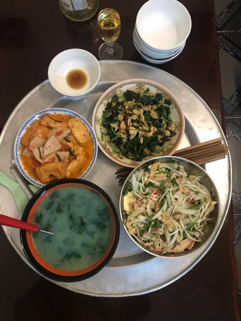Mưa bão em không đi chợ. Có nhiêu ăn nhiêu. Mời các cụ.