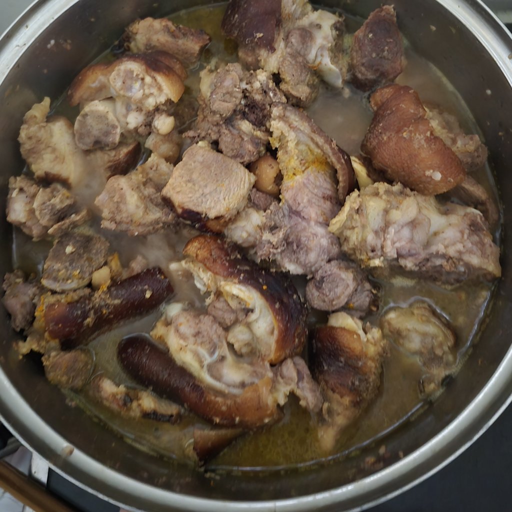 Món tớ thích nhất, lần sau nấu món này sau khi xào thơm thì đậy vung, vặn nhỏ lửa hết cỡ rồi đun, như thế nước từ gân cốt nó rỉ ra tạo độ sánh ngọt. Đun nhỏ lửa kiểu này để 40-45 phút tắt bếp mở vung. chiều ăn đun lần hai, lúc đấy mới chế nước tuỳ ăn cơm hay ăn bún ;))