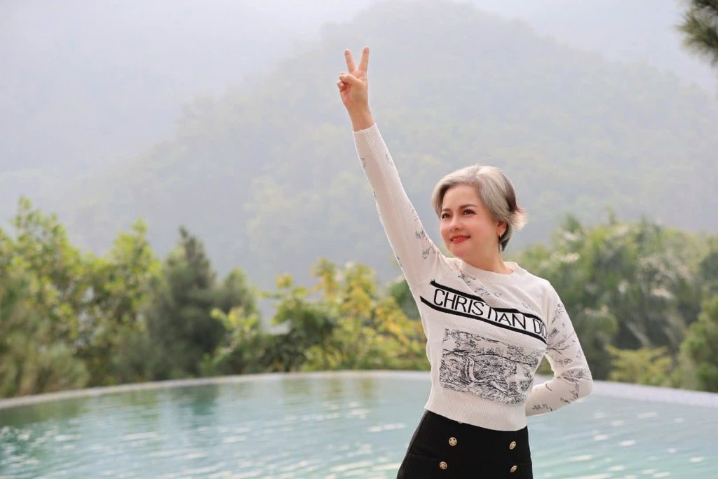 Em vừa còm ở đây mà fb lên luôn bài của chị diễn viên Thu Quế, tóc bạc tự nhiên đây ạ: