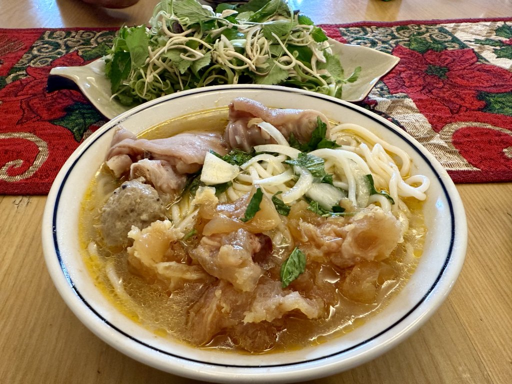 Trưa nay e nấu bún bò Huế, chỉ có chân giò, gân bò và bò viên: