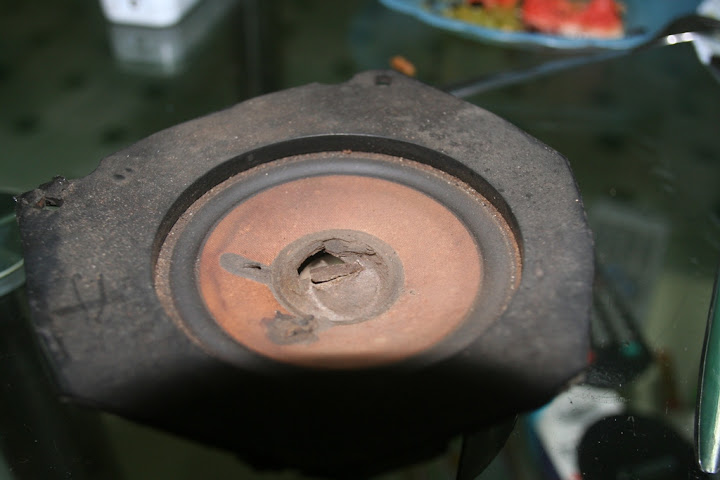 Blaupunkt xịn đấy các bác ạ, màng loa bằng giấy. Chắc sau 20 năm bị rớt nước vào nên mục cả rồi (loa ngửa trên mặt táp-lô)