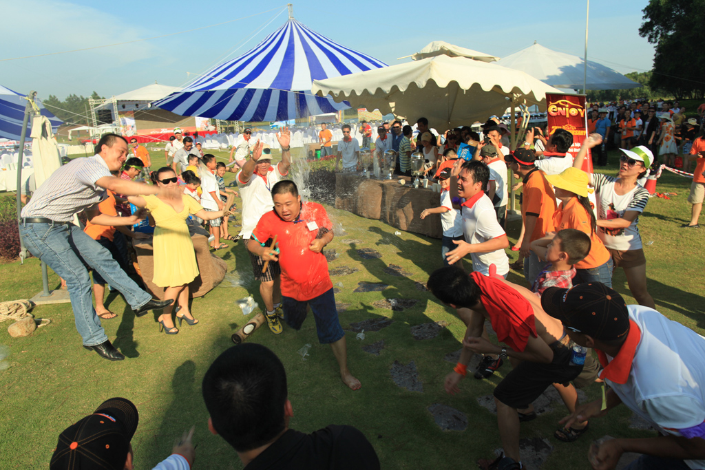 . Lần đầu tiên đứng kín hai bên, thế là ném vào nhau ướt sũng, lần sau rút kinh nghiệm thì một bên vắng hẳn. Lần sau rút kinh nghiệm "nói nhỏ" thôi cụ nhé.:" Trong lúc mọi chuyện đang rất em đẹp thì có một cụ do trọng tài tính sai hay thế nào đó mà huỷ kết quả trước, cụ í bức mình nên nói rất to, tổ trọng tài quyết định cho thi lại một phần cũng là do tránh mất đoàn kết hoặc để người xem không có cảm giác khuất tất. Em cũng nói với các cụ là tất cả các game bọn em tổ chức cũng đã cố gắng hết sức để tạo sân chơi công bằng, cho nên, nếu có lỗi, đó là lỗi phát sinh ngoài ý muốn, mong các cụ hết sức thông cảm. Về sau, chính cụ này vẫn về nhất. :''