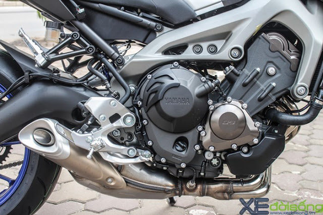 Chiếc nakedbike sở hữu trái tim là khối động cơ 3 xi-lanh Crossplane dung tích 847cc, làm mát bằng dung dịch, công suất 115 mã lực tại vòng tua máy 10.000 vòng/phút và mô-men xoắn cực đại 87,5 Nm tại 8.500 vòng/phút, đi kèm là hộp số 6 cấp. MT-09 sử dụng công nghệ kiểm soát ga Ride-by-wire, quản lí ga, một máy tính sẽ “đọc” việc mở van tiết lưu, phân tích các yếu tố khác như vòng tua máy, vị trí số, lọc gió và áp lực xả… và sau đó sẽ điều khiển việc phun nhiên liệu với số lượng chính xác nhất. Công nghệ này có tên YCC-T – công nghệ điều khiển bướm ga.