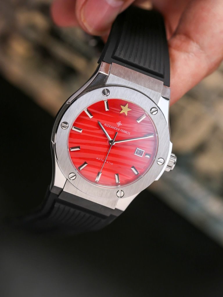 Điểm nhấn nằm ở mặt số camo tím độc đáo kết hợp cùng dây thép President sang trọng, mang đến vẻ ngoài đẳng cấp khó có thể rời mắt.