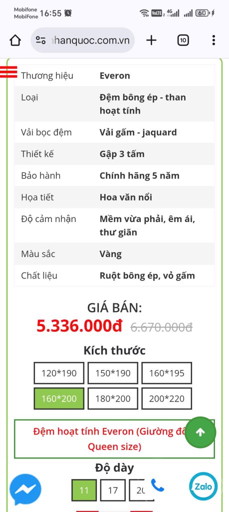 Đệm 1m6 mua hơn 5tr nay em TL chỉ 2tr thôi ạ, đệm chính hãng everon, check thoải mái ạ
